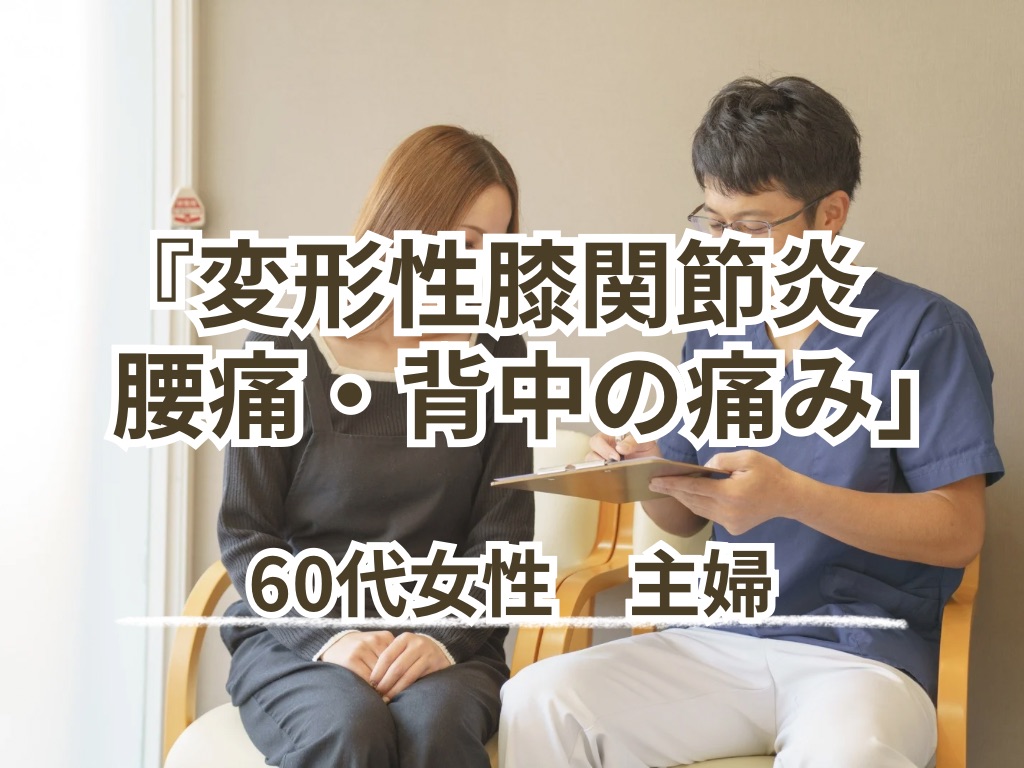 変形性股関節症 変形性膝関節症 患者さんの声 歩行困難 歩行時痛 腰痛 膝の痛み【変形性膝関節炎と腰痛・背中の痛み】「体調も少しずつ良くなっていて、受診して良かったです。熱心な先生で信頼しています」【60代女性 主婦のお悩み】 「体調も少しずつ良くなっていて、受診して良かったです。熱心な先生で信頼しています」 変形性膝関節炎による腰や背 …