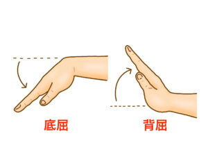 肘の内側(屈筋) → 手首を曲げる(底屈)動き
