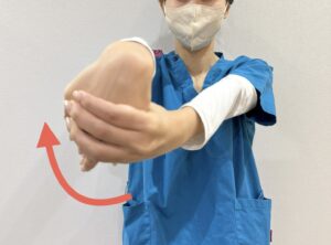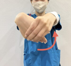 どちらかと言うと手首に痛みや辛さを感じやすいと思いますので、痛気持ちいいぐらいの加減で行いましょう。