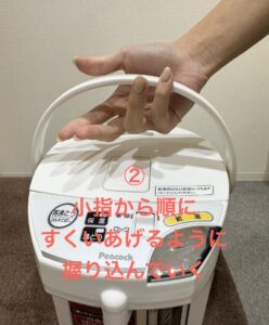 ・順序を意識し、しっかりと握り込みをしてから持ち上げる