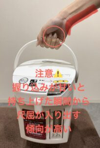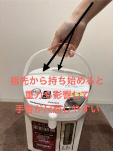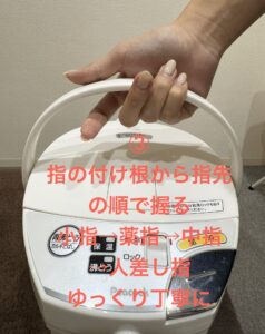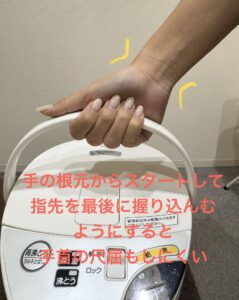 まずは以下の2つについて、特にお鍋などの取手を持ち上げる際に意識してください。