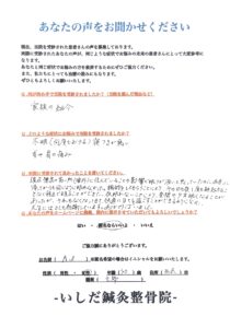 肩こりや頭痛、体調不良、扁桃腺炎にお悩みんだった患者さんからいただいたアンケートです。