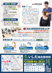 愛媛県西条市でいしだ鍼灸整骨院を開業しています、院長の石田将太郎(いしだしょうたろう)です。
