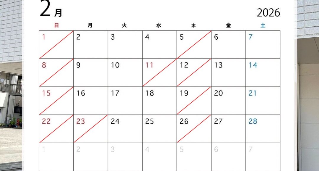 2月は通常通りの営業に加え、祝日もありますので、普段と曜日感覚が少し変わりやすい月です。