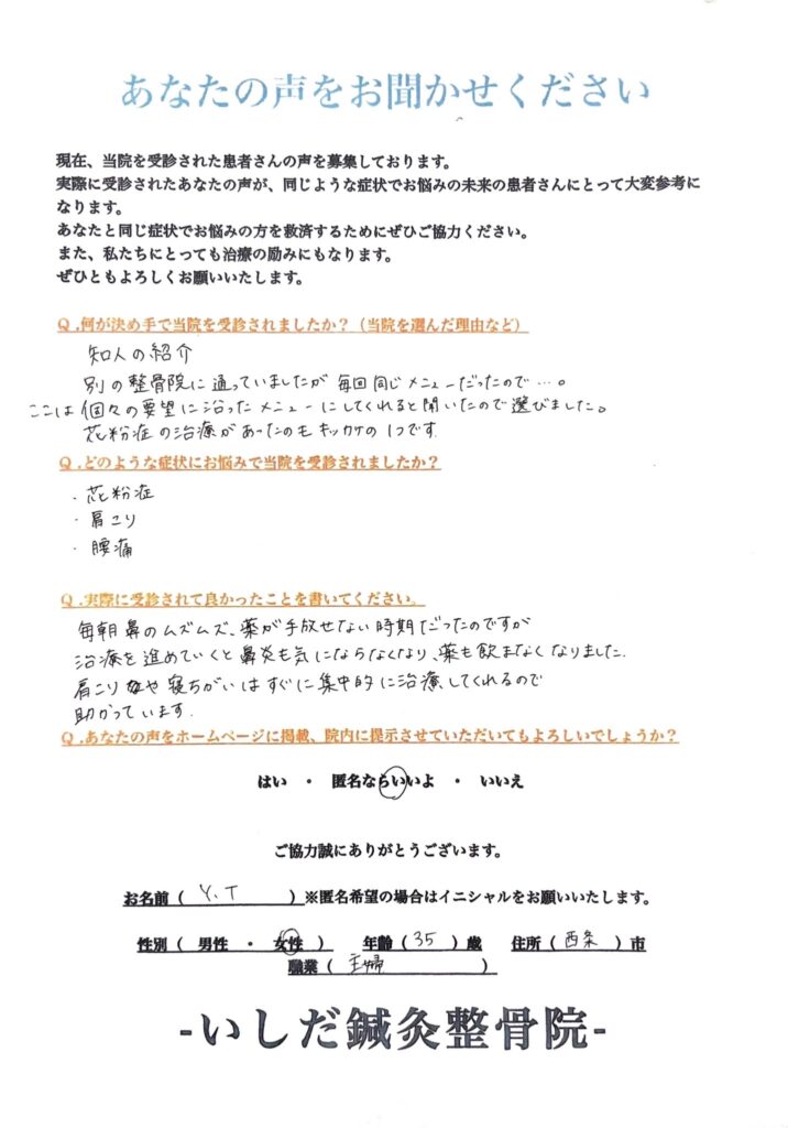 3. 花粉症がつらい方へ|眠くならない当院の花粉症施術について【愛媛県西条市|いしだ鍼灸整骨院|スタッフブログ(R8.3.4)】