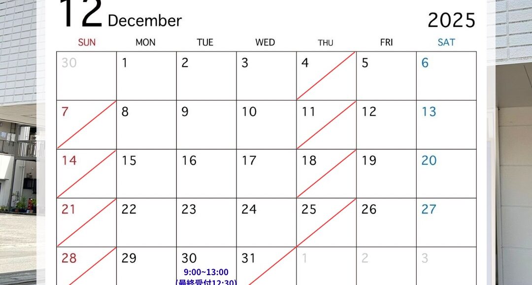 • 12月の営業日・年末年始の休診日