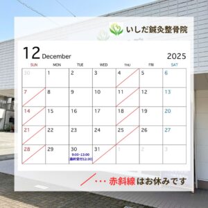 12月の営業日と年末年始のお知らせ【愛媛県西条市|いしだ鍼灸整骨院|スタッフブログ(R7.11.26)】