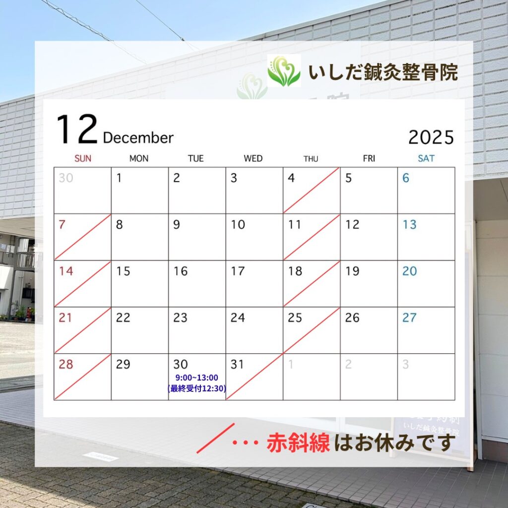 12月の営業日と年末年始のお知らせ【愛媛県西条市|いしだ鍼灸整骨院|スタッフブログ(R7.11.26)】