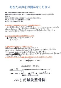 接骨院ではなく整骨院なんだなと実感できました。通いだして、今までわからなかった事がわかり、