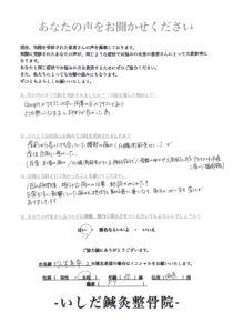 日常生活に影響していた痛みも施術を重ねる毎に楽になり、身体のつかい方も変化がありました!!