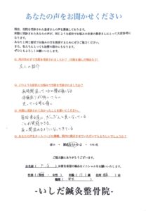 「座っていても痛みが気にならなくなりました。施術に来るたびにだんだんと良くなっていることが実感できます」