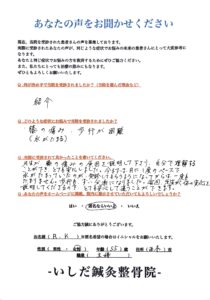 先生が、膝の痛みの原因を説明して下さり、自分で理解することができ、とても安心しました。